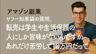 アマゾン副業「ヤフー知恵袋の質問、転売は学生や生活保護の人にしか旨味がないんですか。」